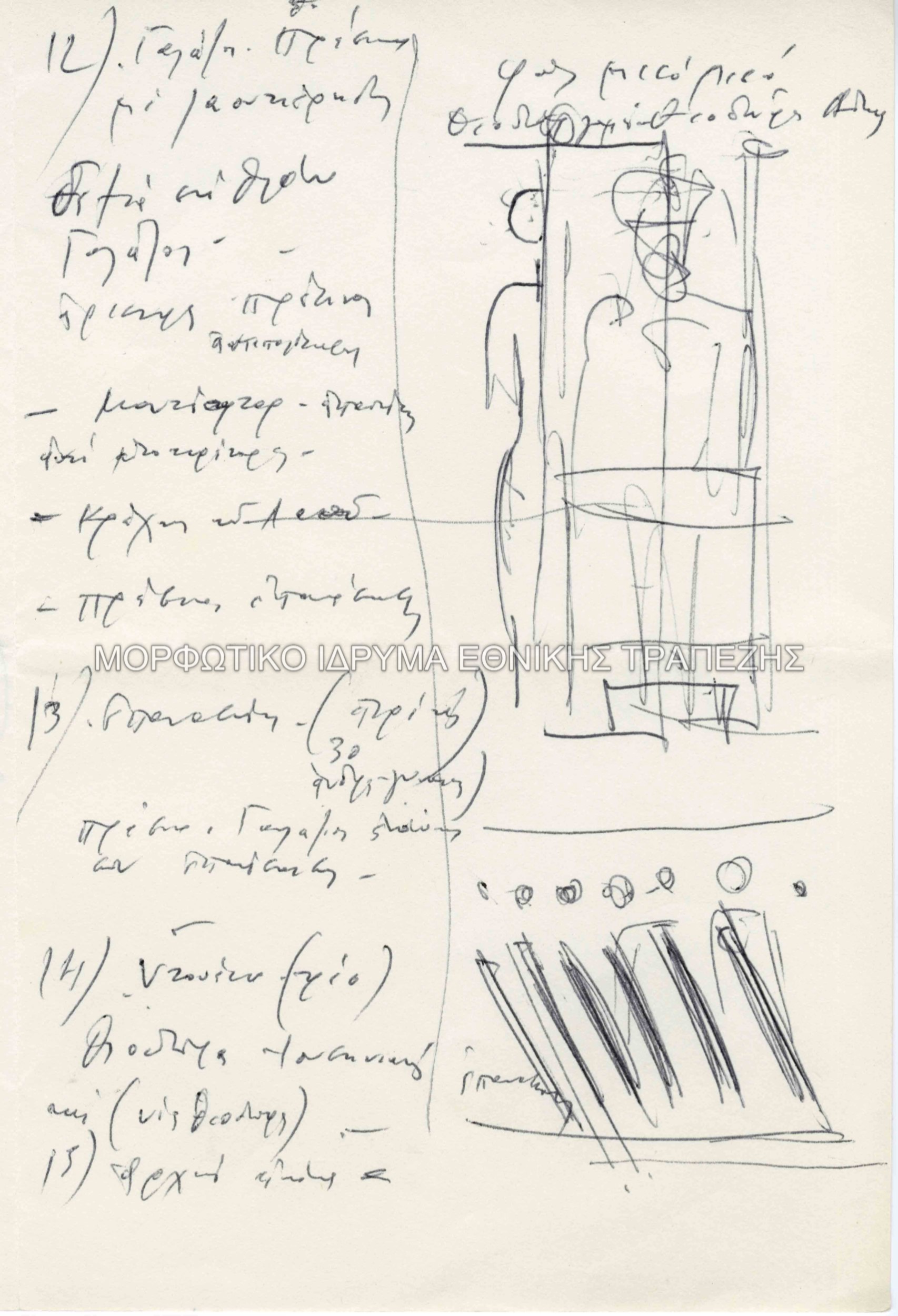Σημειώσεις και σκαρίφημα για σκηνικό, Δοξαστικό, Ελληνικό Χορόδραμα, Ραλλού Μάνου