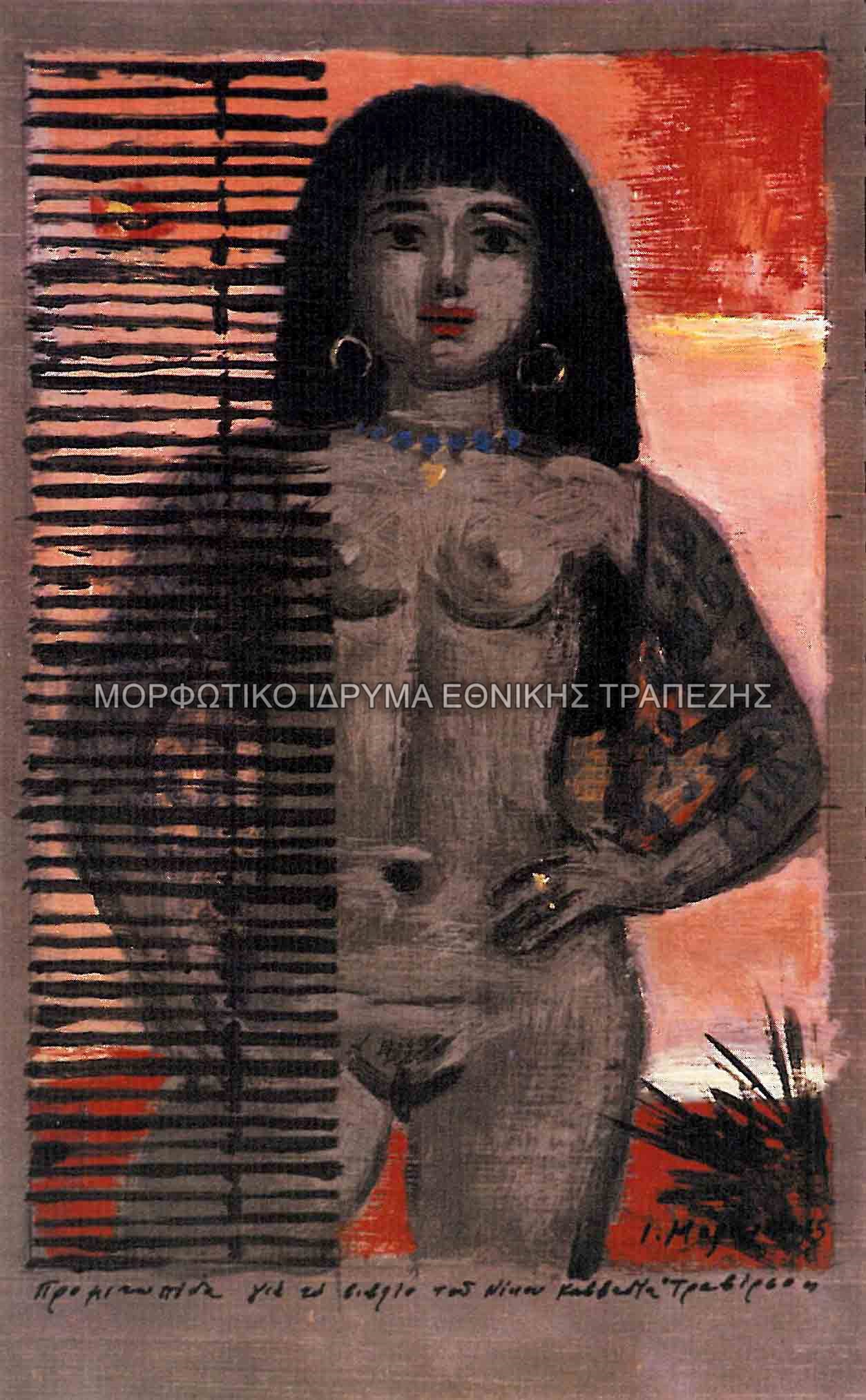 Προμετωπίδα για την ποιητική συλλογή «Τραβέρσο» του Νίκου Καββαδία, 1975 Ακρυλικό σε χαρτί, 24 x 16 εκ.